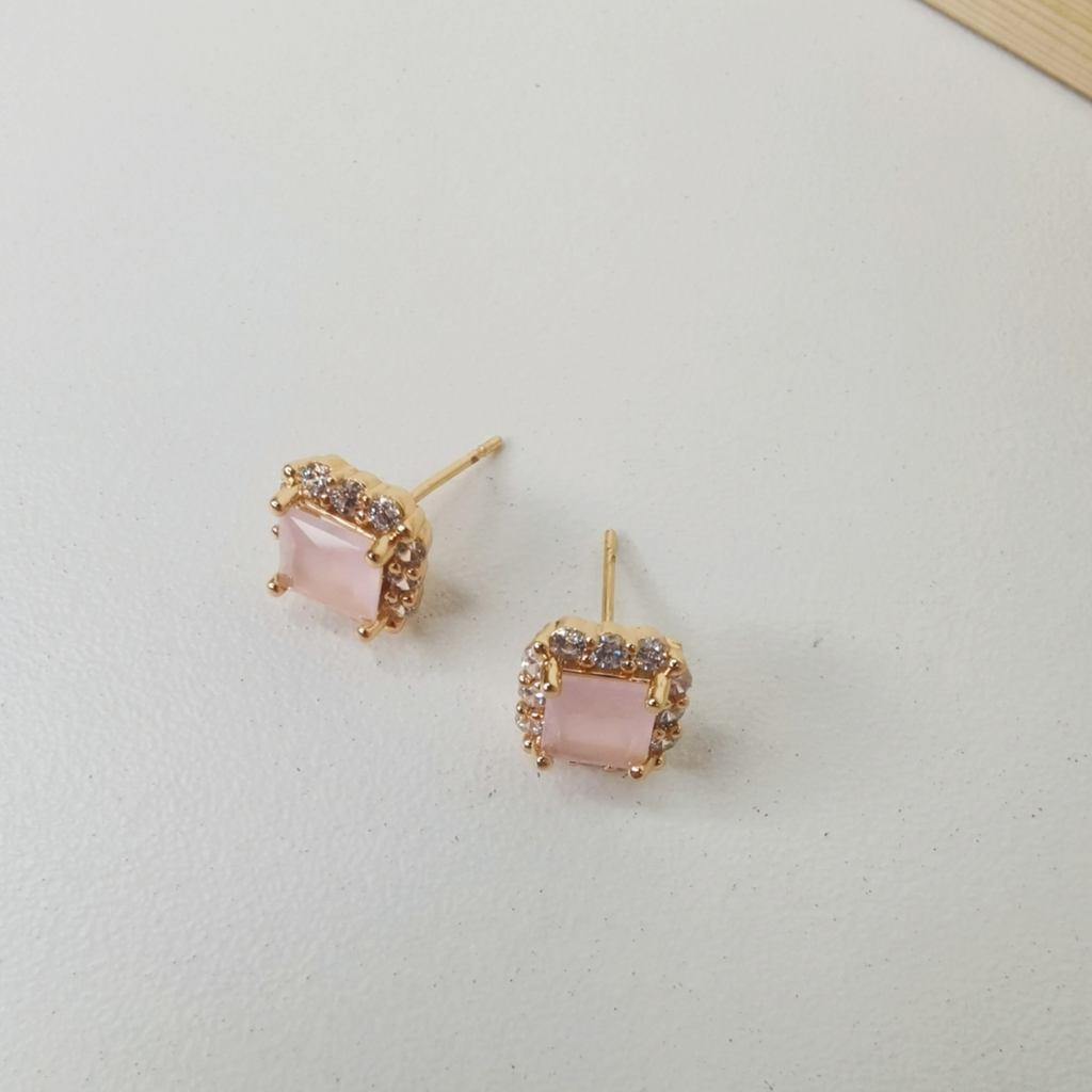 Bañados en oro de 18k en tono dorado rose brillante. Tienen un diámetro aprox. 1cm. Con broche tipo poste.