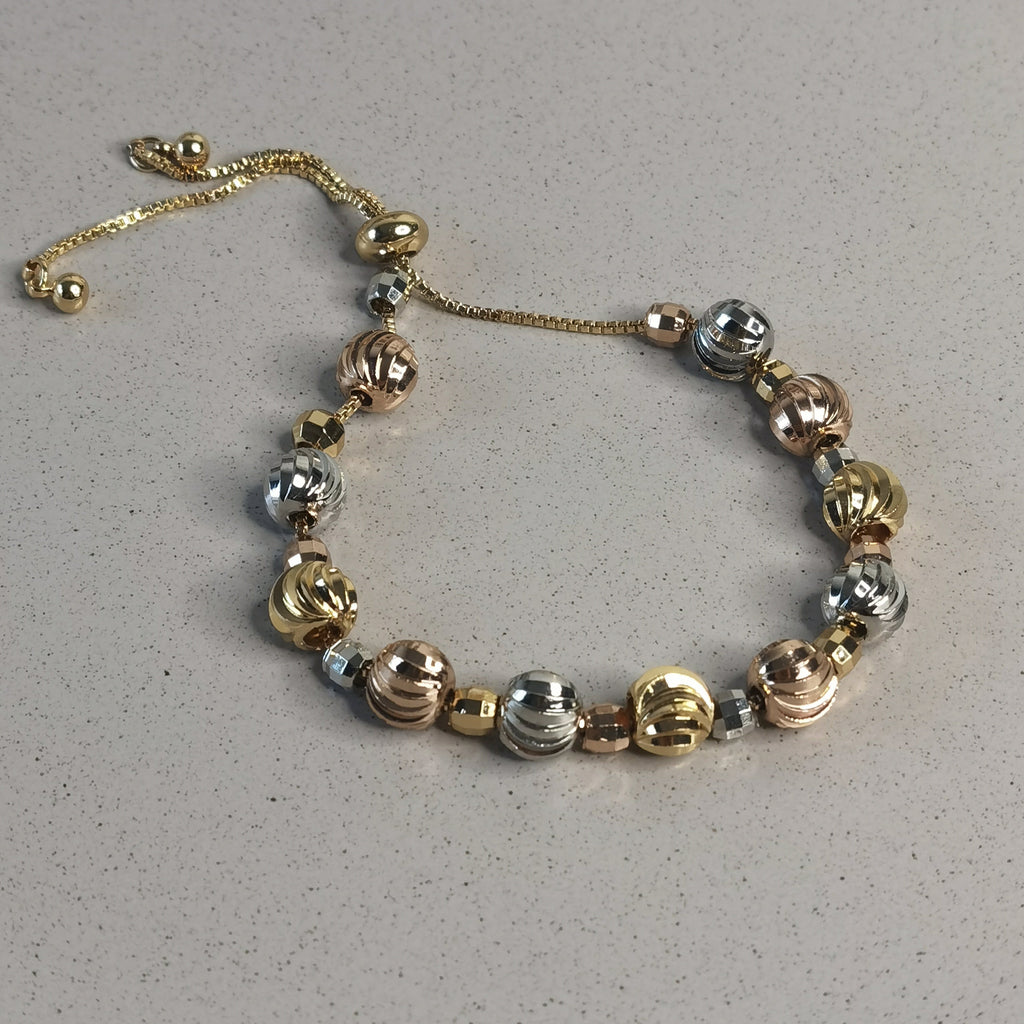 Descubre la elegancia versátil de la Pulsera Dayan, diseñada en acero inoxidable con balines en tres tonos: dorado rose, plata y dorado. Su acabado moderno y regulable la convierte en el accesorio perfecto para cualquier ocasión, realzando tu estilo con un toque sofisticado y adaptable. Añade un detalle de moda que complementa tu esencia única.