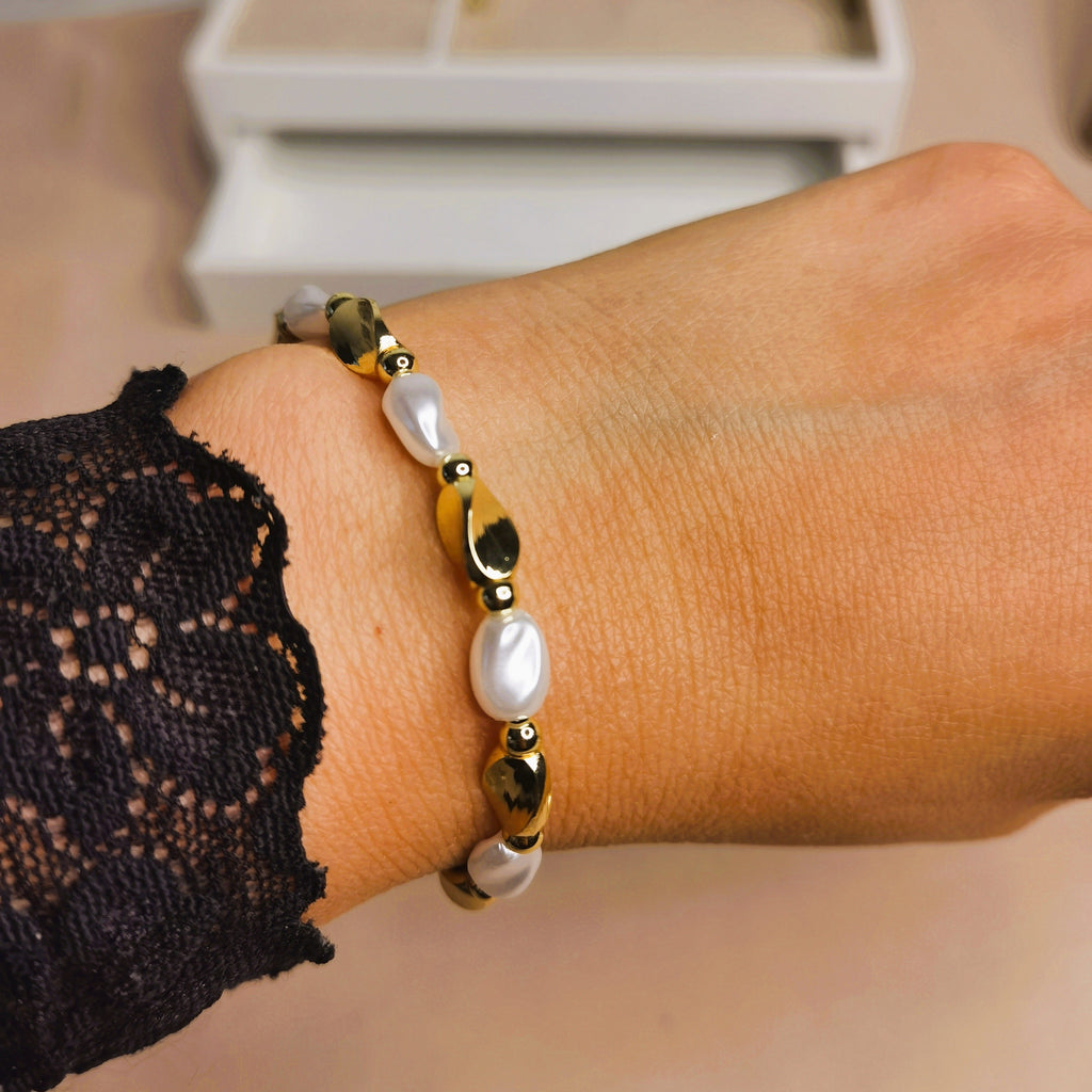 Añade un toque de elegancia moderna a tu look con la Pulsera Antonela. Esta pulsera de acero inoxidable combina perlas delicadas y balines dorados, creando un accesorio sofisticado y duradero. Perfecta para cualquier ocasión, realza tu estilo con un diseño que destaca por su calidad y brillo resistente. Ideal para mujeres que buscan moda con personalidad y detalles exclusivos.
