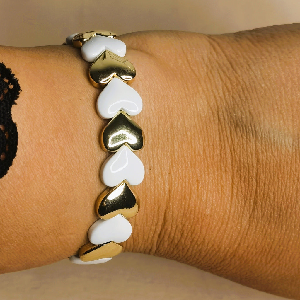 Descubre la Pulsera Love White, una joya elegante de acero inoxidable diseñada con delicados eslabones en forma de corazón. Este accesorio moderno realza cualquier look, aportando un toque romántico y sofisticado que destaca en toda ocasión. Perfecta para mujeres que valoran el estilo y la durabilidad en sus accesorios diarios.